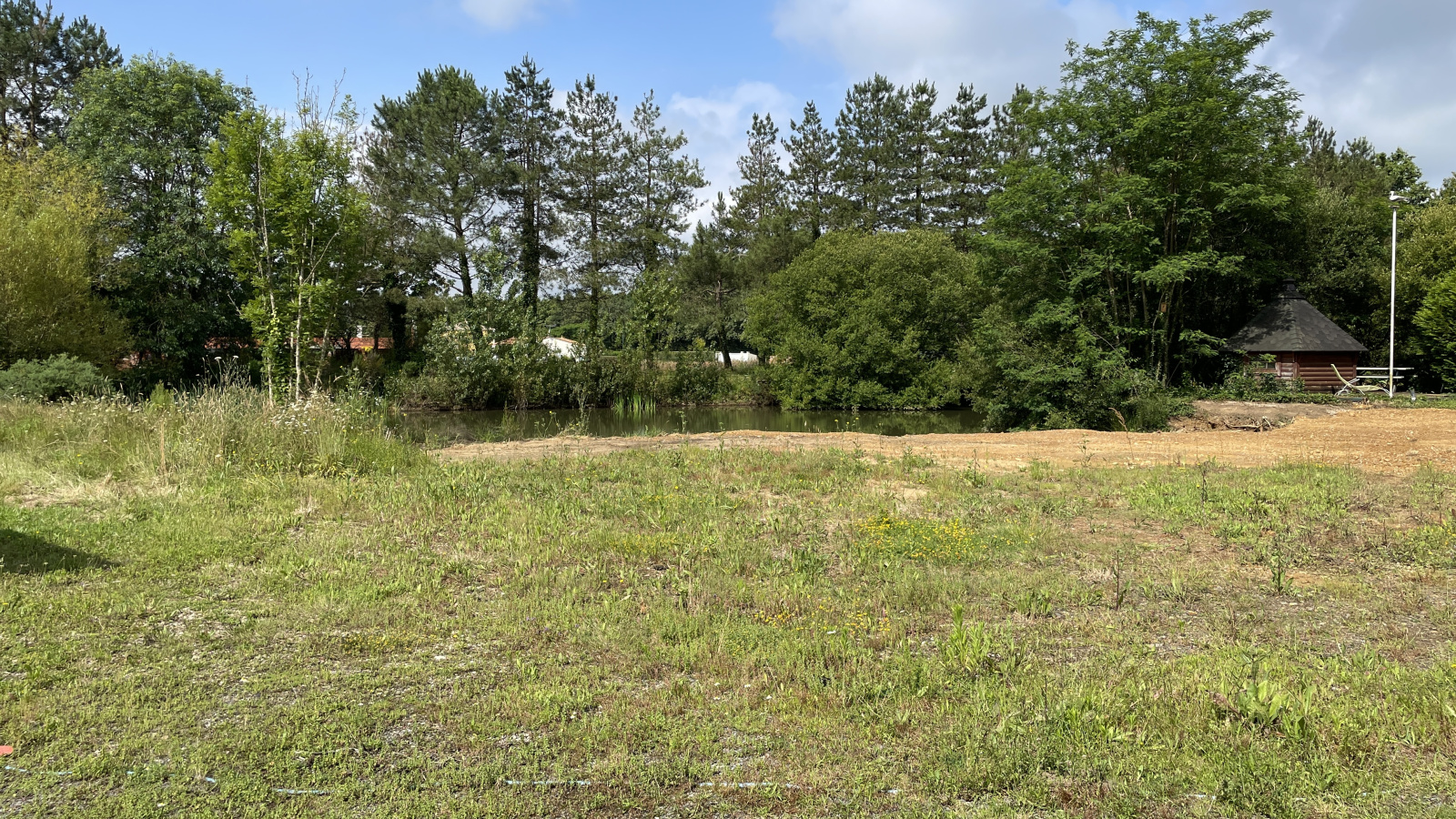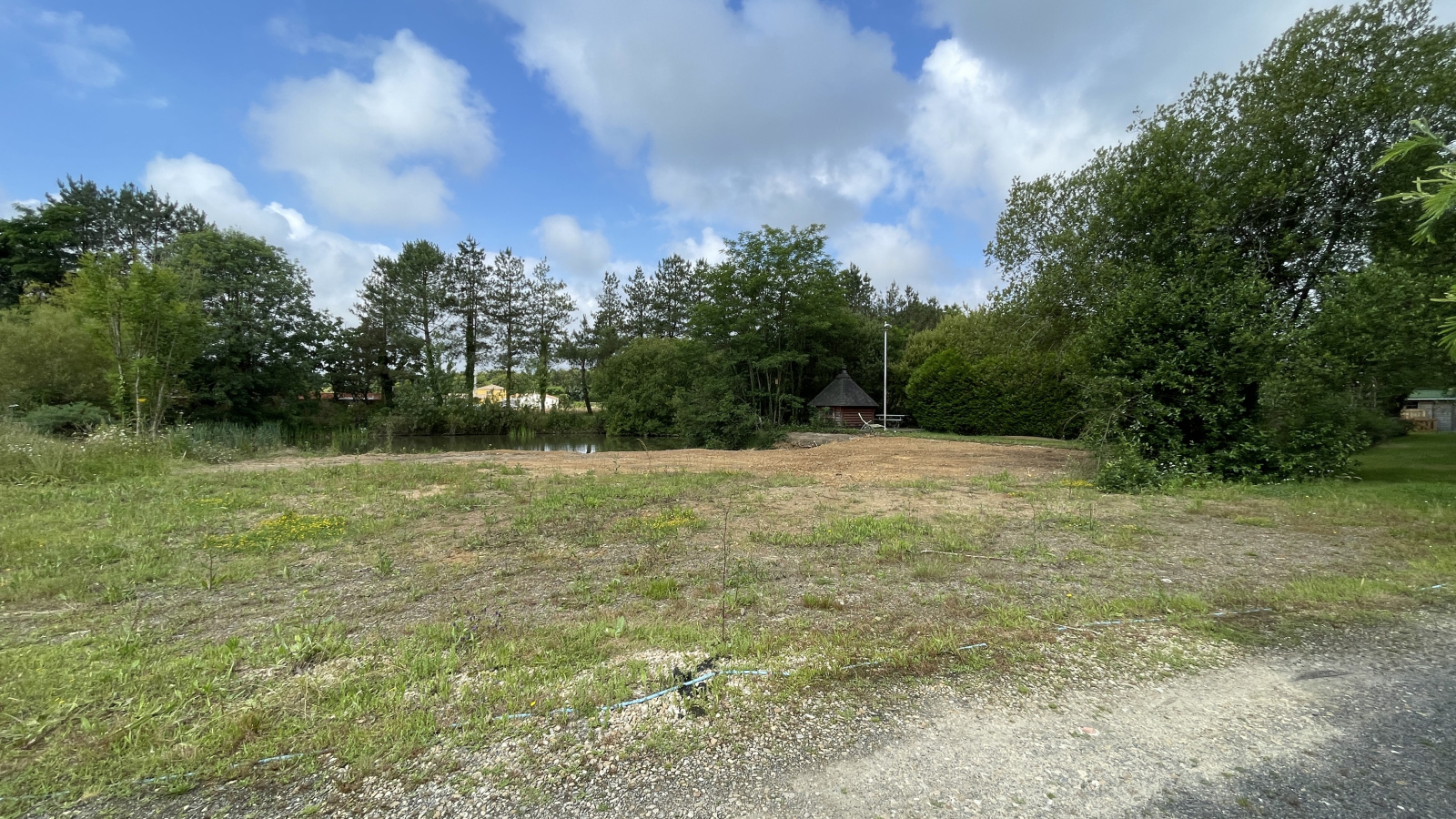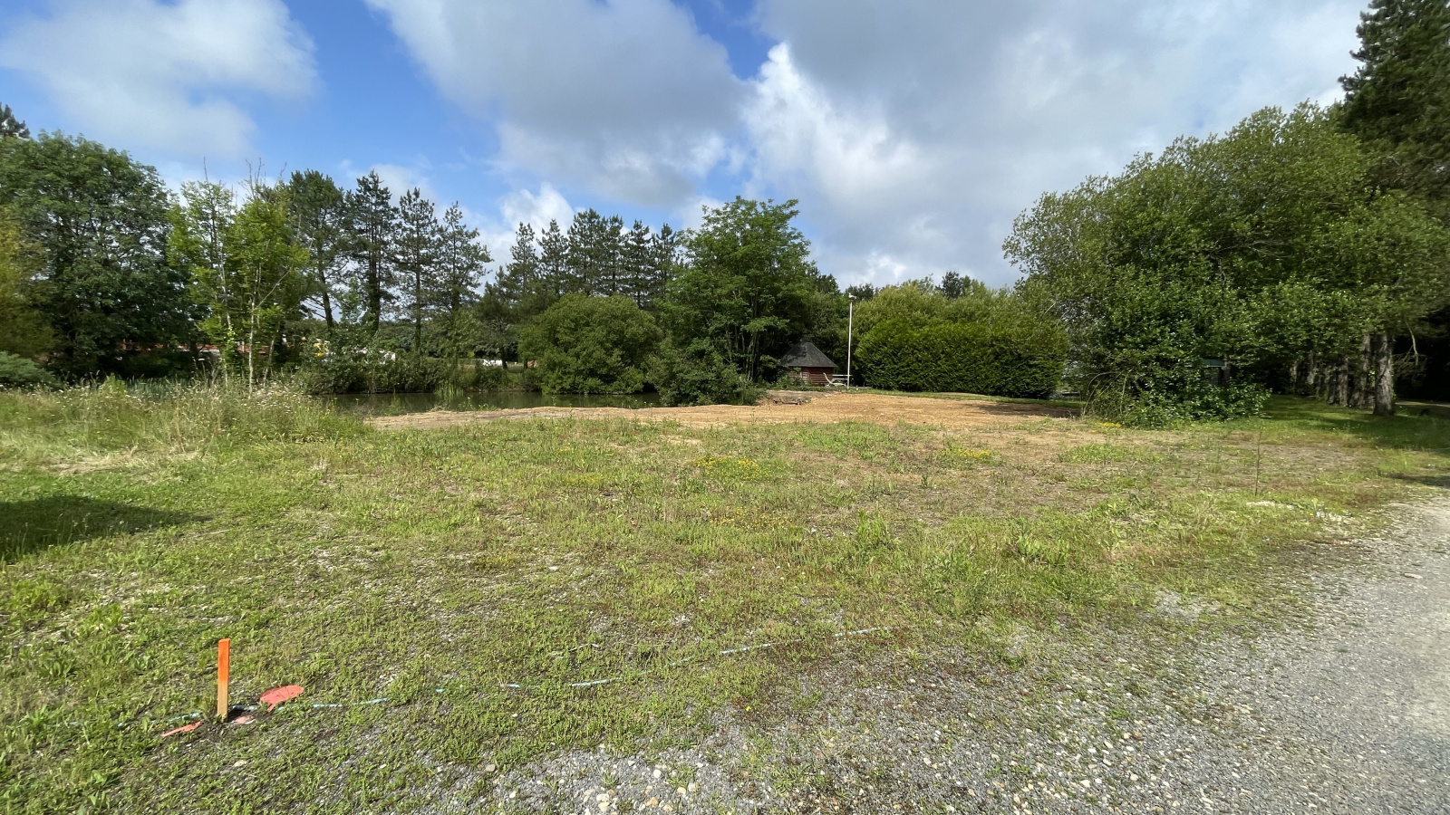 Belle parcelle constructible  de 1510 m² avec étang, remblaiment possible, à viabiliser,  assainissement individuel à prévoir, exposée sud, au calme, secteur moulin des landes, 5 minutes du centre-ville en voiture. Zone UBb du règlement d'urbanisme. Certificat d'urbanisme positif.